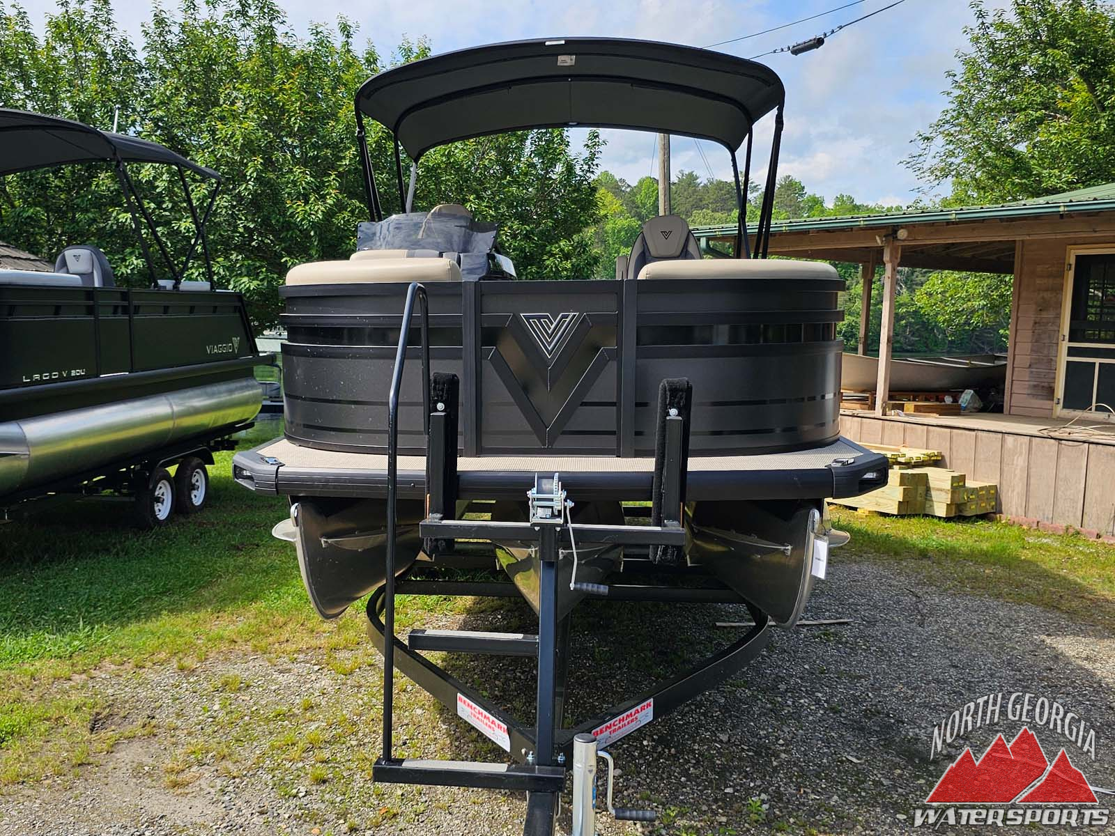 This Black Lago V22S Swingback is a perfect combination of pontoon and Tritoon with its “Performance Package.”